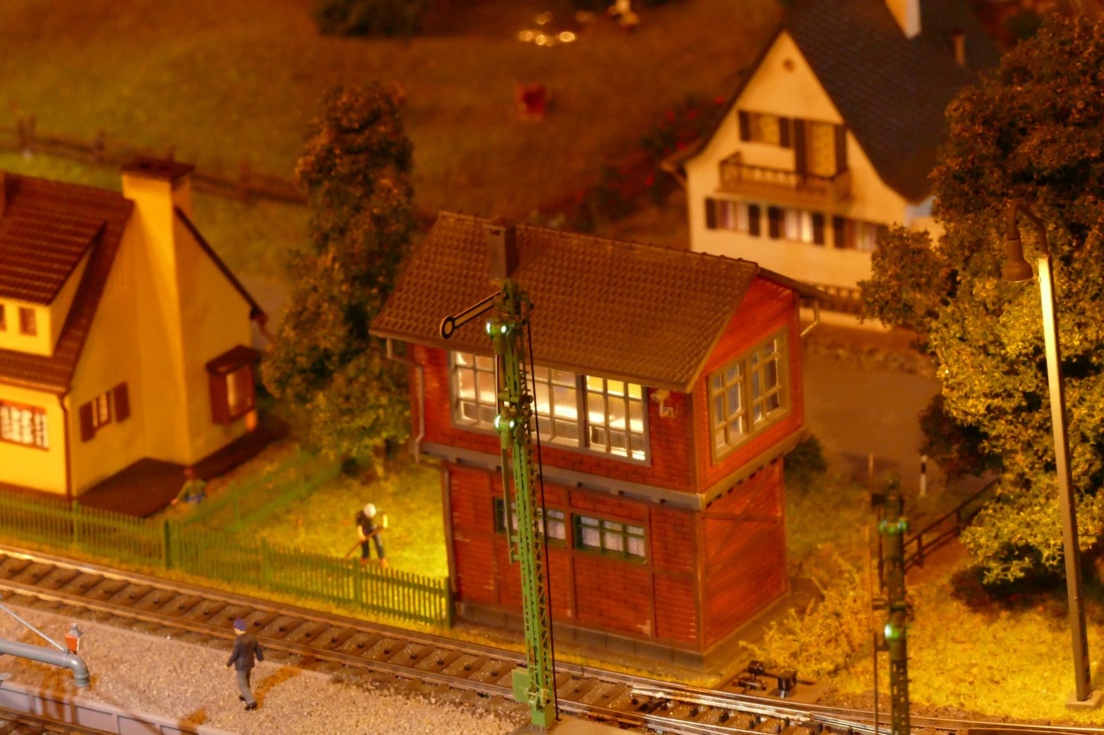 Im Stellwerk ist auch abends viel Konzentration gefordert. Durchgangszüge und die abendlichen Personenzüge lassen keine Langeweile aufkommen.