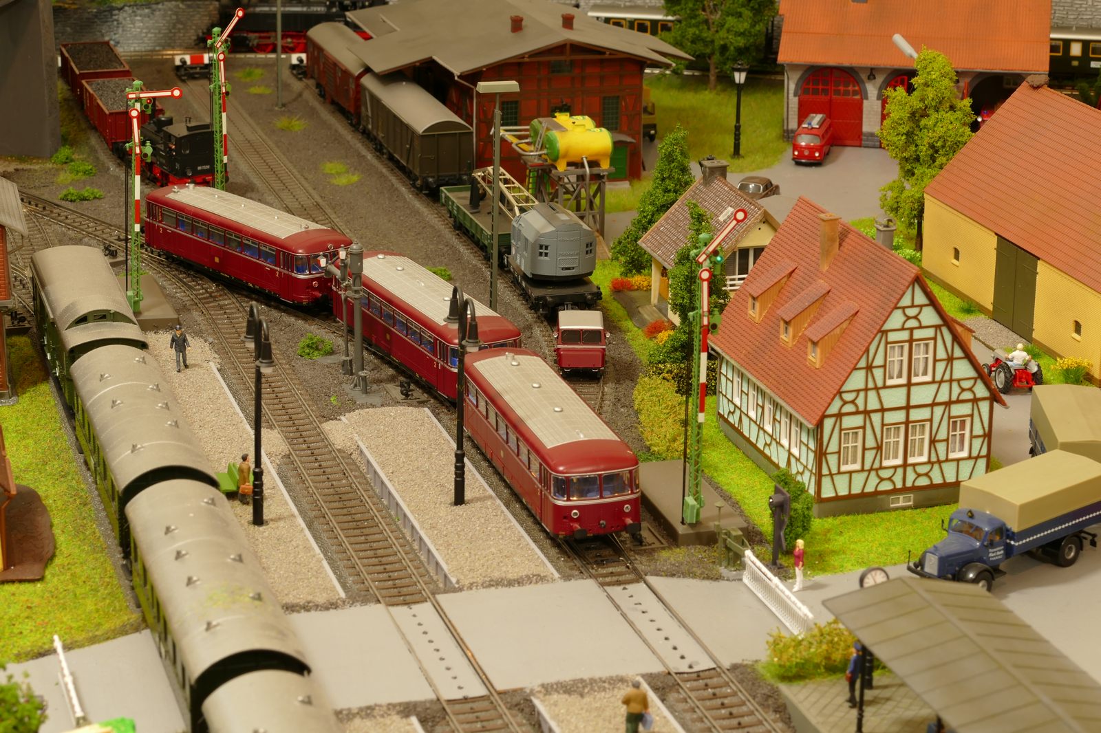 Nun ist die Einfahrt frei für den Schienenbus von Roco. Die 75er ist ein Brawa-Modell.