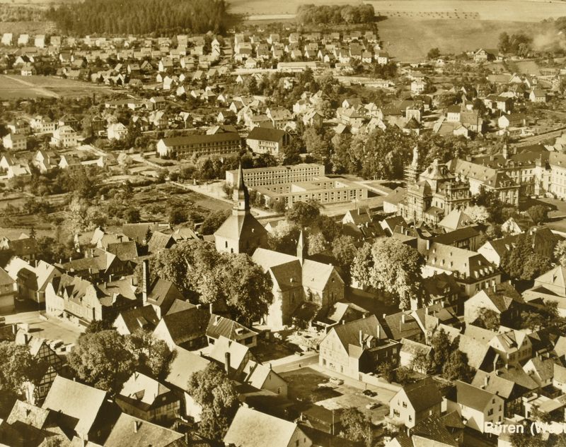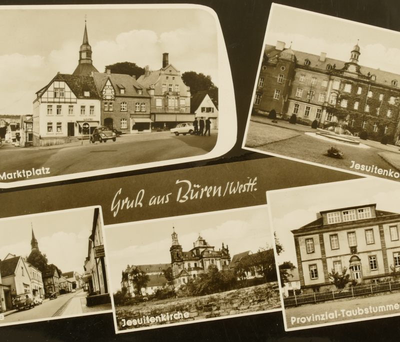 Büren-Abbildungen auf sogenannten Postkarten findet man in vielfältiger Weise, vom Einzelfoto in s/w bis zur farbigen Postkarte mit 9 Motiven aus unserem Büren/Westfalen. Mein Nachbar Willi Nietmann besitzt eine sehr schöne Sammlung dieser Motive, dazu gesellen sich noch Motive aus privaten Fotosammlungen; ich habe eine größere Anzahl dieser Aufnahmen digitalisiert und möchte sie hier sehr gern den Besuchern meiner Website zeigen. Um das alte Büren so etwa ab dem Jahre 1900 in vielen, zum Teil noch nie gesehenen Motiven übersichtlich präsentieren zu können, habe ich die Aufnahmen thematisch – zunächst in 12 Kategorien – zusammengefasst und will sie nach und nach in ordentlicher Größe allen Interessierten auf eigenen Themenseiten darstellen. Viel Spaß demnächst hier und ein großes Dankeschön an den Inhaber dieser schönen Kartensammlung. Alle Aufnahmen – bis auf gekennzeichnete Ausnahmen – entstammen der Karten- und Foto-Sammlung von Willi Nietmann. Friedel H. Weber