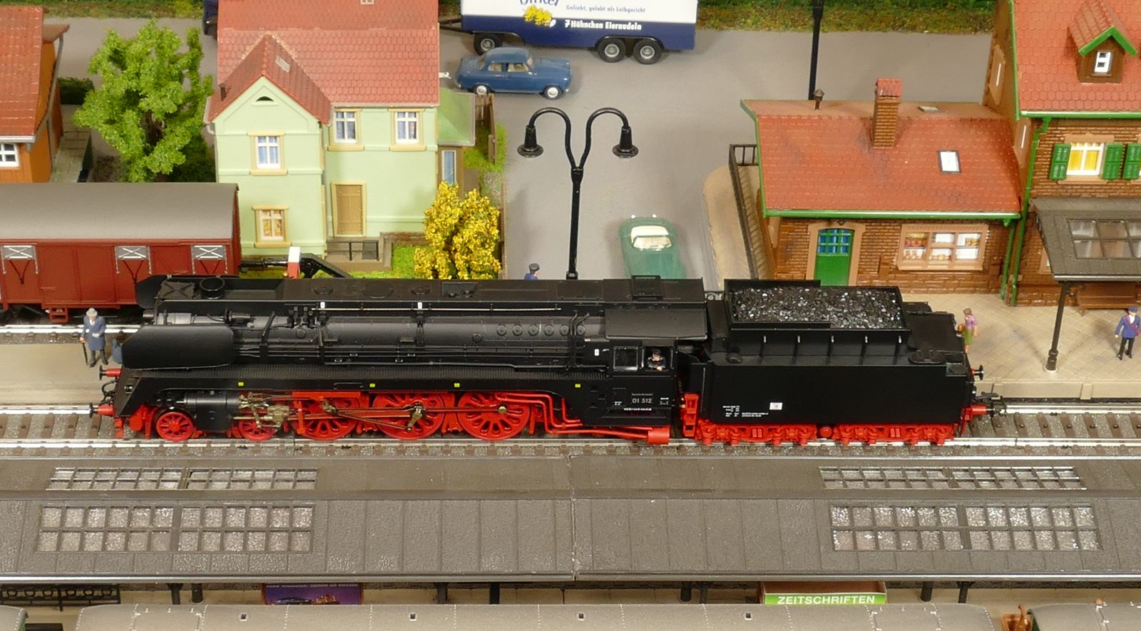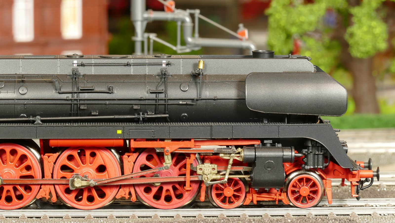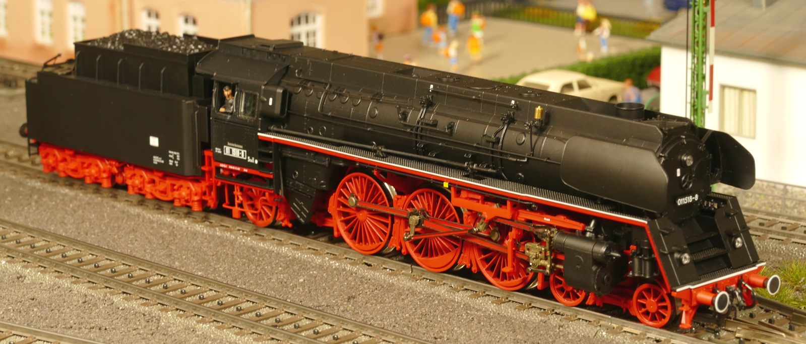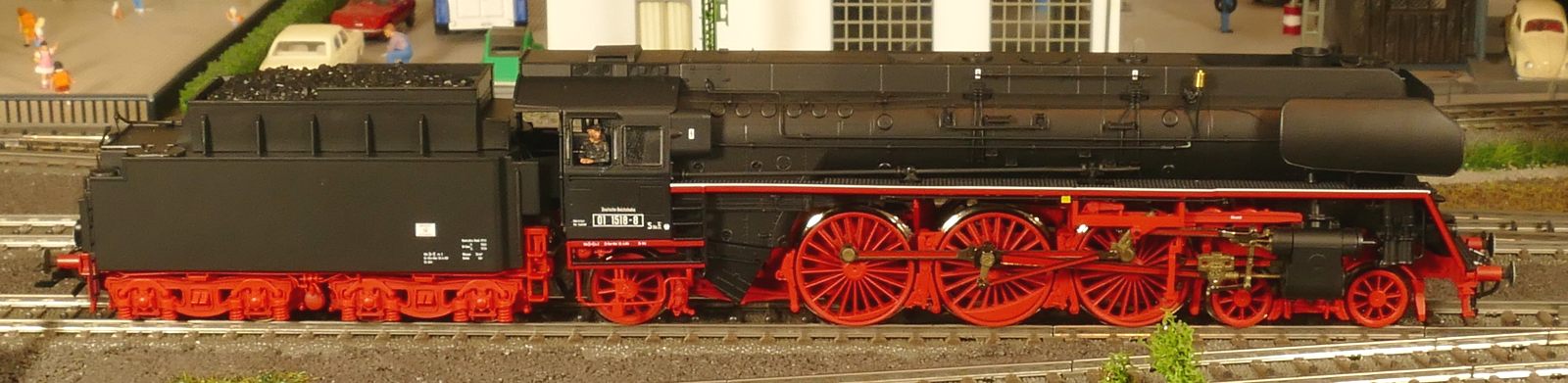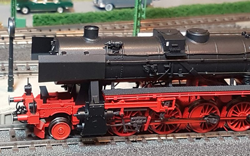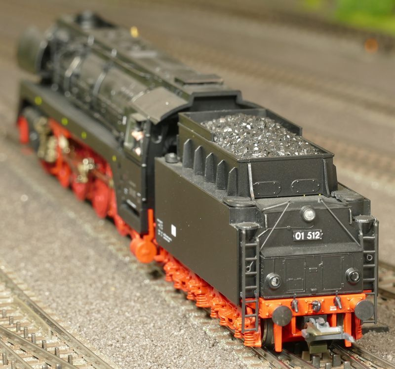 An dieser Stelle sollte die BR01 173 von Brawa (40907) vorgestellt werden. Leider muss ich darauf verzichten, da ich unzufrieden mit dem Modell war und es letztlich zurückgegeben habe. Das erste Modell hatte keine funktionierende Führerhausbeleuchtung (F7) und einen Kessel, der vorn mind. 1mm höher lag als hinten. Das zweite, umgetauschte Ersatzmodell konnte die vordere Stirnbeleuchtung nicht ausschalten. Zudem fiel mir hier auf, dass die Lok bei Rückwärtsfahrt sich quer stellt. Die Führerhauskabine ragt ca. 2mm „neben“ den Tender. Das sind schrecklich aus und kann zu Kollisionen mit Bahnsteigen, Güterschuppen und ähnlichem führen. Brawa sollte die Lok/Tender-Verbindung überarbeiten, damit das Rückwärtsfahrproblem verschwindet. Auch reichen die Langsamfahreigenschaften mit umgerechnet 1,8km/h bei CV02=2 (Werk: 3) nicht an Roco-Loks heran. Die Roco-BR01 1518 (ebenfalls Modelljahr 2021) „kriecht“ mit 0,4km/h vorwärts ohne zu ruckeln. Die Brawa-Lok 01 173 lässt sich auch extrem weit nach links und rechts bewegen, wenn sie aufgegleist ist. Ein solches übergroßes Spiel haben auch fast alle Brawa-Wagen. Ich habe mich deshalb z. B. von allen 4-achsigen Kesselwagen getrennt. Schade um die so detaillierten Artikel, die zu den teuren auf dem Markt gehören. Die BR01 173 steht mit 569,90 Euro in der Brawa-Preisliste und ist sicher nirgends unter 510 Euro zu bekommen. Da stimmt das Preis-Leistungs-Verhältnis für mich nicht mehr!