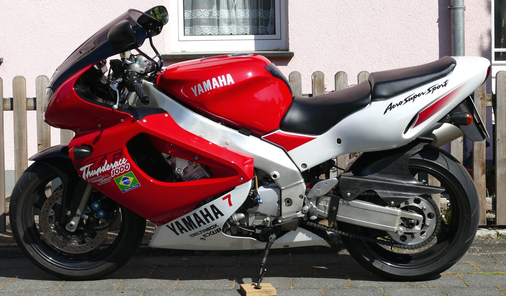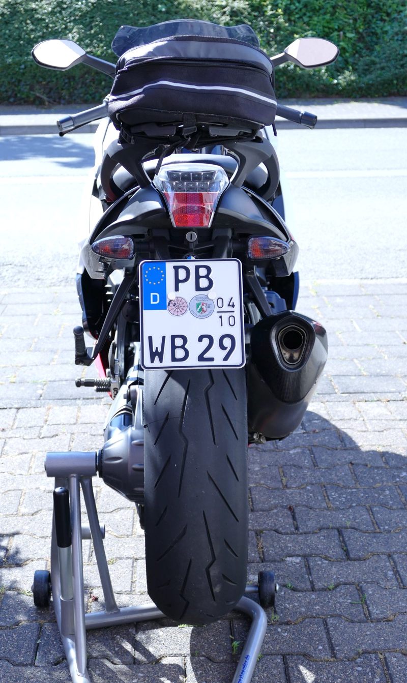 Mit vereinten Kräften haben wir das richtige Kabel ermittelt und gekappt, aber in der Suzuki-Fachwerkstatt mit Hilfe meiner Abbildung und des Textes dazu. Ja, was soll ich sagen; nun war meine Suzuki GSX-R1000 K6 so, wie ich sie mir vorgestellt habe. Ayrton Senna-Aufkleber noch drauf und fertig. Très bon!!!