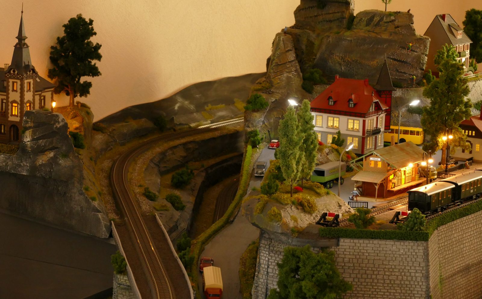 Der kleine Ort Silbach liegt erhöht auf meiner Anlage. Die Gebäude liegen ca. 20 bis 35cm über der Hauptebene. Interessant sind der Berg mit den Felsen, die bei Touristen und Bergsteigern beliebt sind. Davon profitieren auch die Dorfbäckerei mit angeschlossenem Cafe und die Metzgerei. Ein kleiner Kopfbahnhof unterstützt die Mobilität und Versorgung bzw. den Warenaustusch des Ortes im Sauerland.
