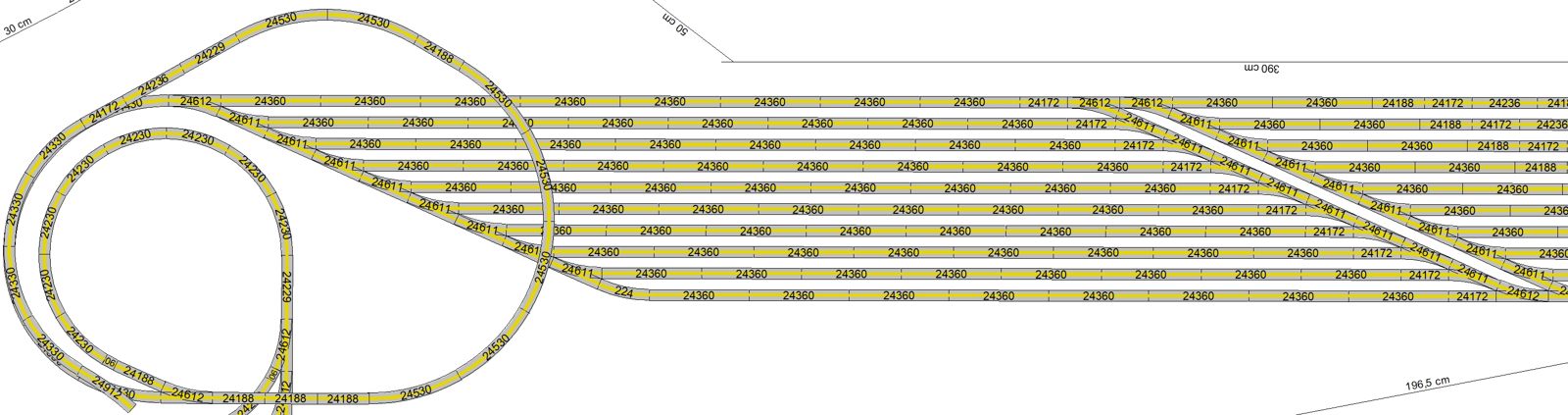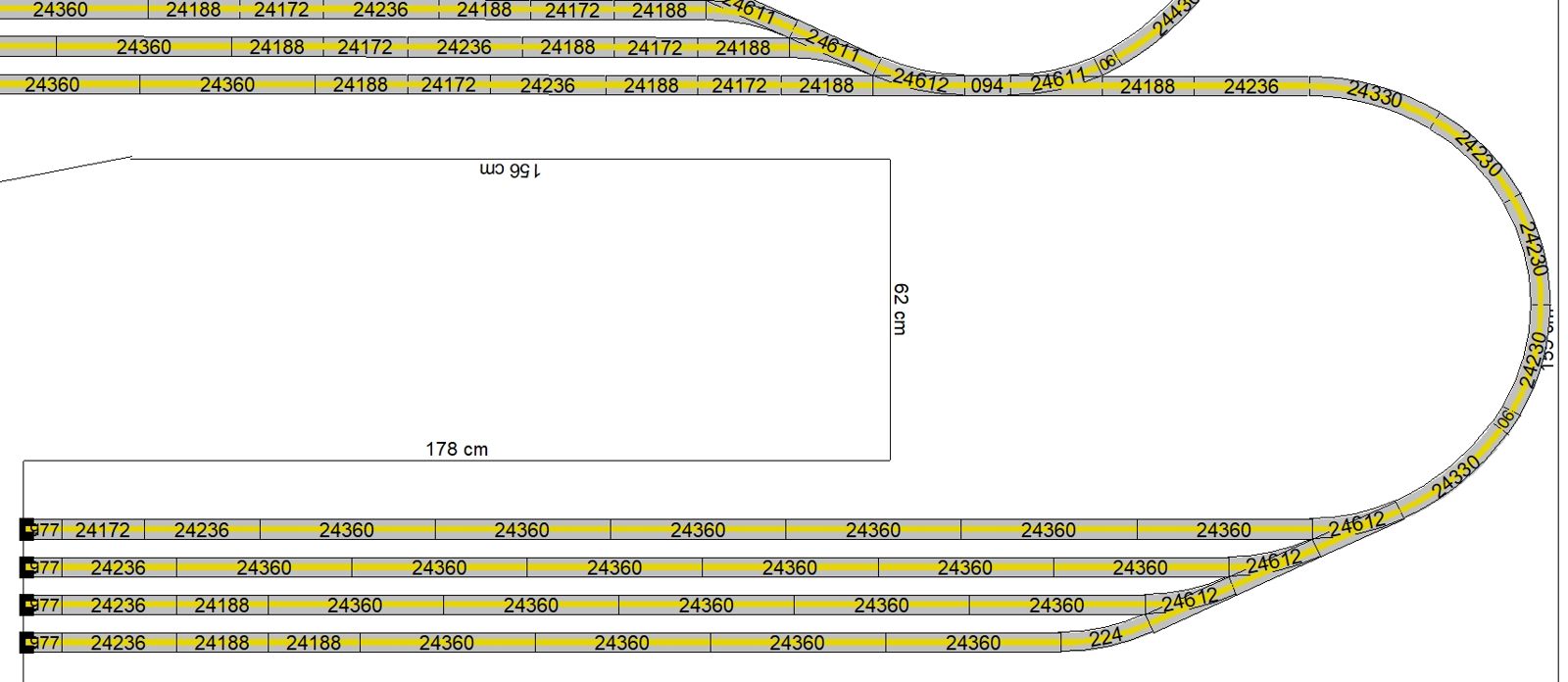3 Gleise mit je 1,36m