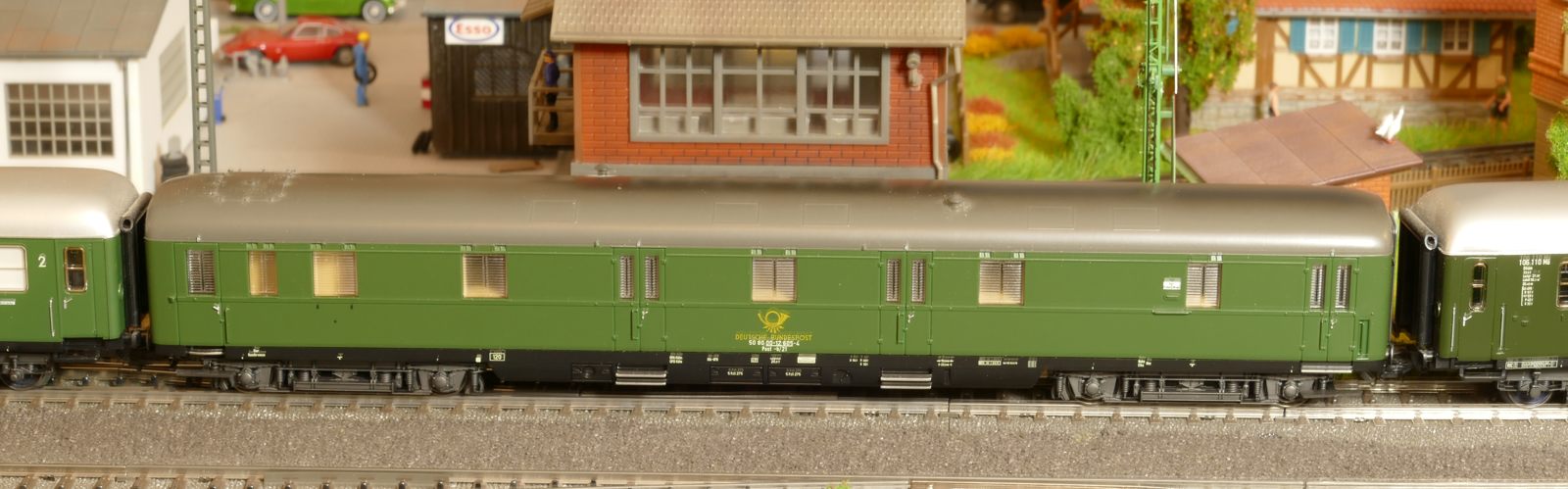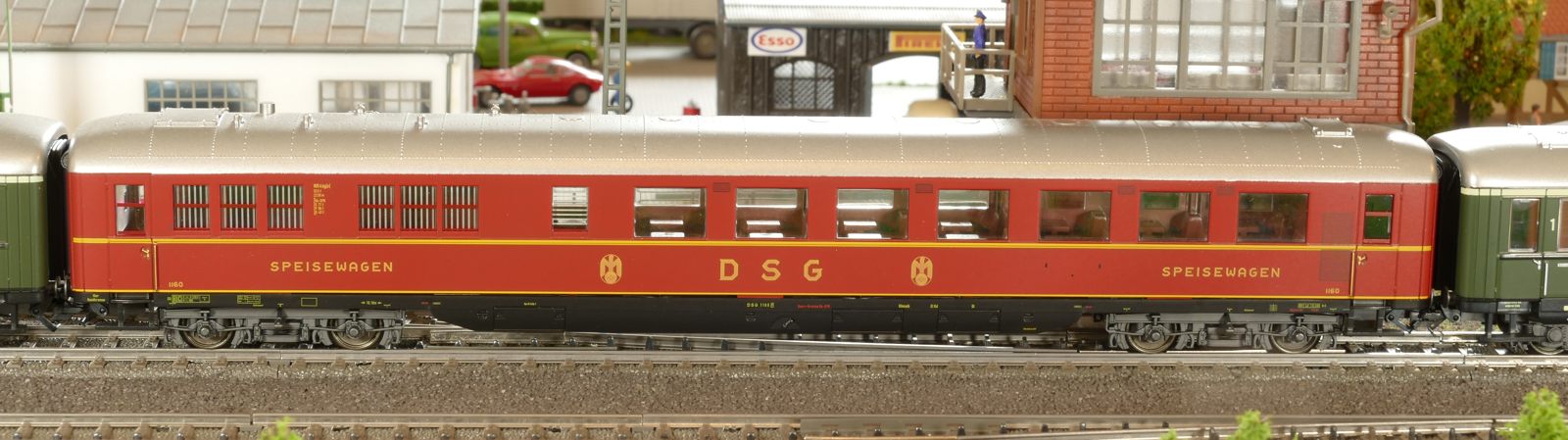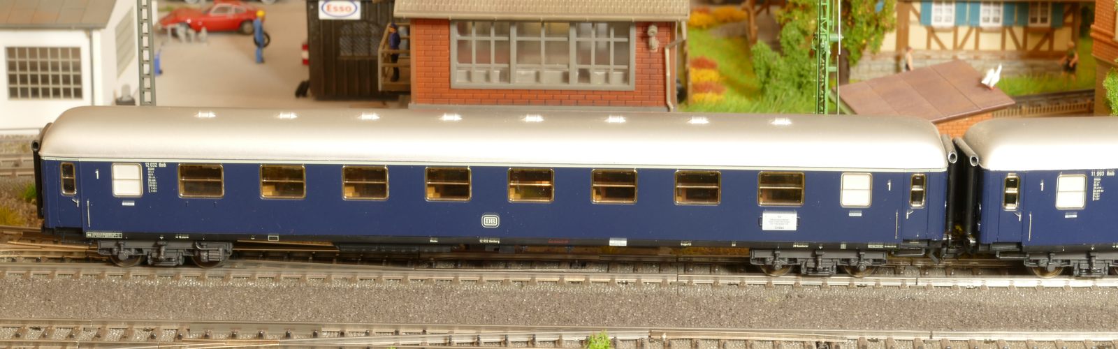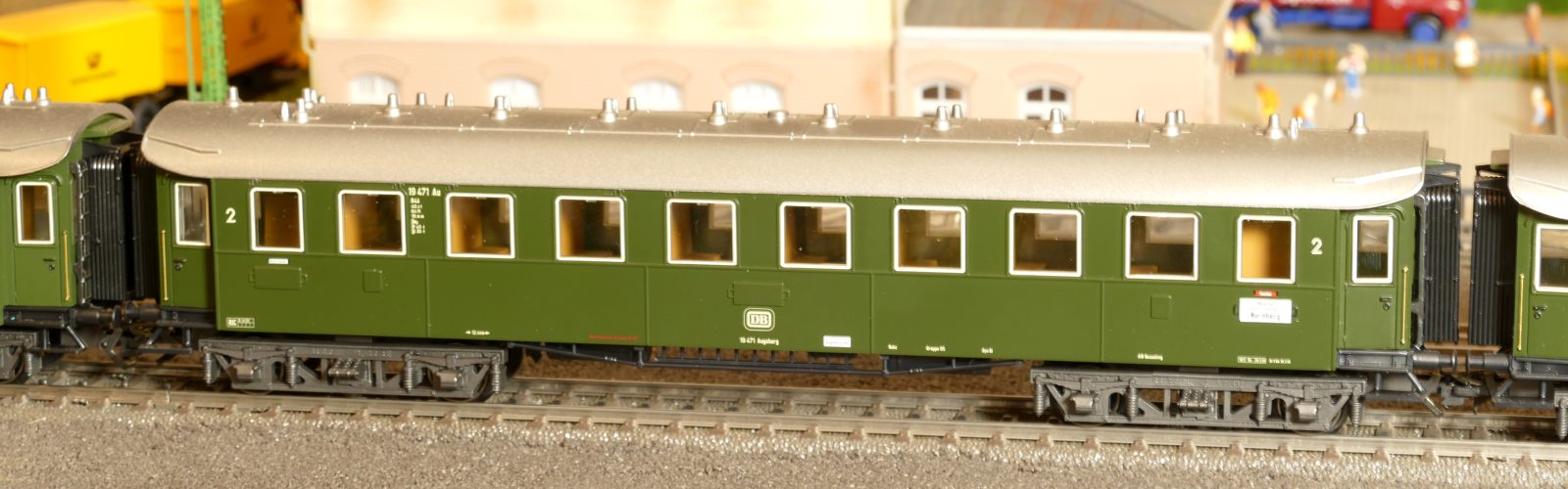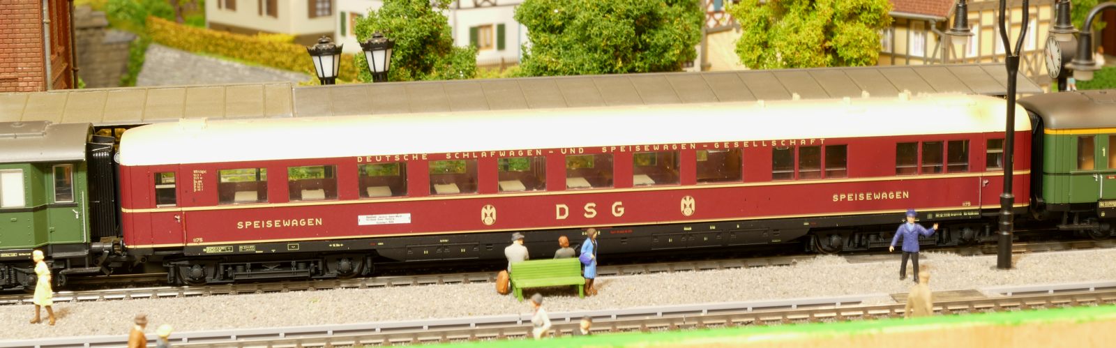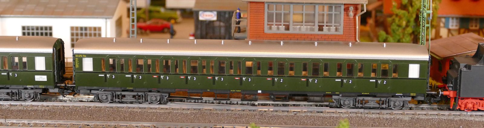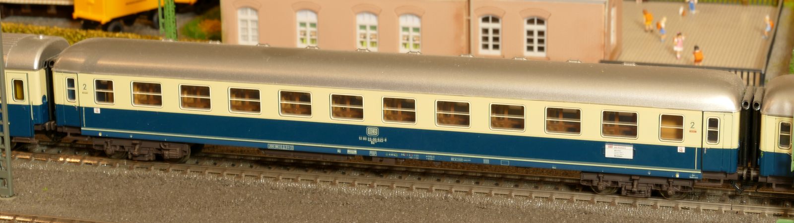 In den Nachkriegsjahren war die Personenbeförderung auf den Lang- oder Fernstrecken eine Sache der Schnellzüge, Eilzüge oder D-Züge. Wobei meines Wissens die Begriffe D-Zug und Schnellzug das Gleiche meinen. Verbindungen zwischen großen Städten wurden von diesen Zugtypen angeboten. In der Regel kann man davon ausgehen, dass die Eilzüge es weniger eilig hatten als die Schnellzüge, weil sie deutlich mehr Unterwegshalte zu bedienen hatten. Beispielsweise hatte der „Heckeneilzug“ E451/452 Bremen/Frankfurt, dem ich ja unter dem Menüpunkt Eisenbahn ein Extra-Kapitel gewidmet habe, da er auch Büren anlief, 22 Unterwegshalte zwischen den beiden Großstädten. So ist die Durchschnittsgeschwindigkeit von 40km/h (1949), 44km/h (1959) und 55km/h (1973) besser einzuordnen. Ich fahre ihn autentisch (1960er) mit 6 Wagen, darunter 4 Silberlinge. Einer weiterer Heckeneilzug des Jahres 1974 war der E1642. Dieser Zug fuhr von Braunschweig nach Aachen und nahm dabei den Laufweg über die Städte Kreiensen – Holzminden – Wehrden (Weser) – Beverungen – Scherfede – Brilon Wald (mein Brilion-Wald auf der Modellbahn) – Schwerte – Hagen – Wuppertal – Köln nach Aachen. Der E1642 war mit einer BR216 bespannt und zog 4 Vierachser: Gepäckwagen grün, 1./2. Klasse Wagen grün, zwei 2. Klasse Wagen, grün. Andere Beispiele sind der E633/634 zwischen Altenbeken und Hamburg oder der E347/348 zwischen Aachen und Hagen. Schnellzüge in dieser Zeit waren da schon deutlich flotter unterwegs, da sie ja auch meist auf den Eisenbahn-Magistralen mit wenig Kurven fuhren und weniger Zwischenhalte zu bedienen hatten. 80 bis 100km/h Durchschnittsgeschwindigkeit wurden damals schon von den schnellsten Zügen erreicht, wobei meistens mit max. 120km/h gefahren werden durfte. Verbindungen wie Stuttgart – Hamburg, Köln – Kiel, Bonn – Hannover, Innsbruck – Dortmund oder gar München – Kiel (1200km in ca. 14 Stunden) stehen für diese Art von Zügen. Na ja, das Reisen damals war doch sehr unterschiedlich zu heute. Zugfenster, die zu öffnen sind, niedrige Bahnsteige, Schwerstarbeit für das Besteigen mit großen Koffern in die hohen Wagen durch schmale Türen, Dampf und Russ allerorten, Bahnsteigkontrollen, Pünktlichkeit. Wenn man selbst unpünktlich war, konnte man sogar dem anfahrenden Zuf nachrennen und auf die Stufen springen, da die Tür natürlich von außen noch zu öffnen war. Ich kenne das aus eigener Erfahrung. Um nur ein paar Fakten in der Zeit der guten alten Bundesbahn zu nennen.