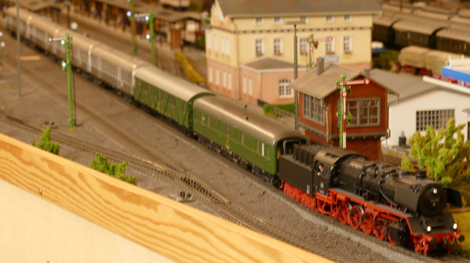 Es war einfach ein schönes Erlebnis, in diesen Zügen zu fahren und die Landschaft geniessen zu können. Ich bevorzuge noch heute einen IC mit einer BR101 als Zuglok gegenüber jedem ICE. Aber auch das ist bald Geschichte. Dann haben wir nur noch den Einheitsbrei im Fahrzeugpark. Dazu die permanente Unpünktlichkeit. Mich schreckt das vom Reisen mit der DB immer mehr ab. Gut, auf meiner Modelleisenbahn gibt es keine negativen Aspekte. Hilfsbereite Menschen beim Einsteigen, freundliches Personal, totale Pünktlichkeit, keine Unfälle, tolle Aussichten, nette Mitfahrende, Dampf-, Diesel- und Elekroloks, Wassertürme, Kohlenbunker, Bahnbetriebswerke mit Drehscheibe und Lokschuppen, Russ auf Boden und Dächern, der Geruch von Dampf, Öl und Diesel, die sagenhafte Geräusche der stampfenden Dampfrösser; ja all das und noch viel mehr …