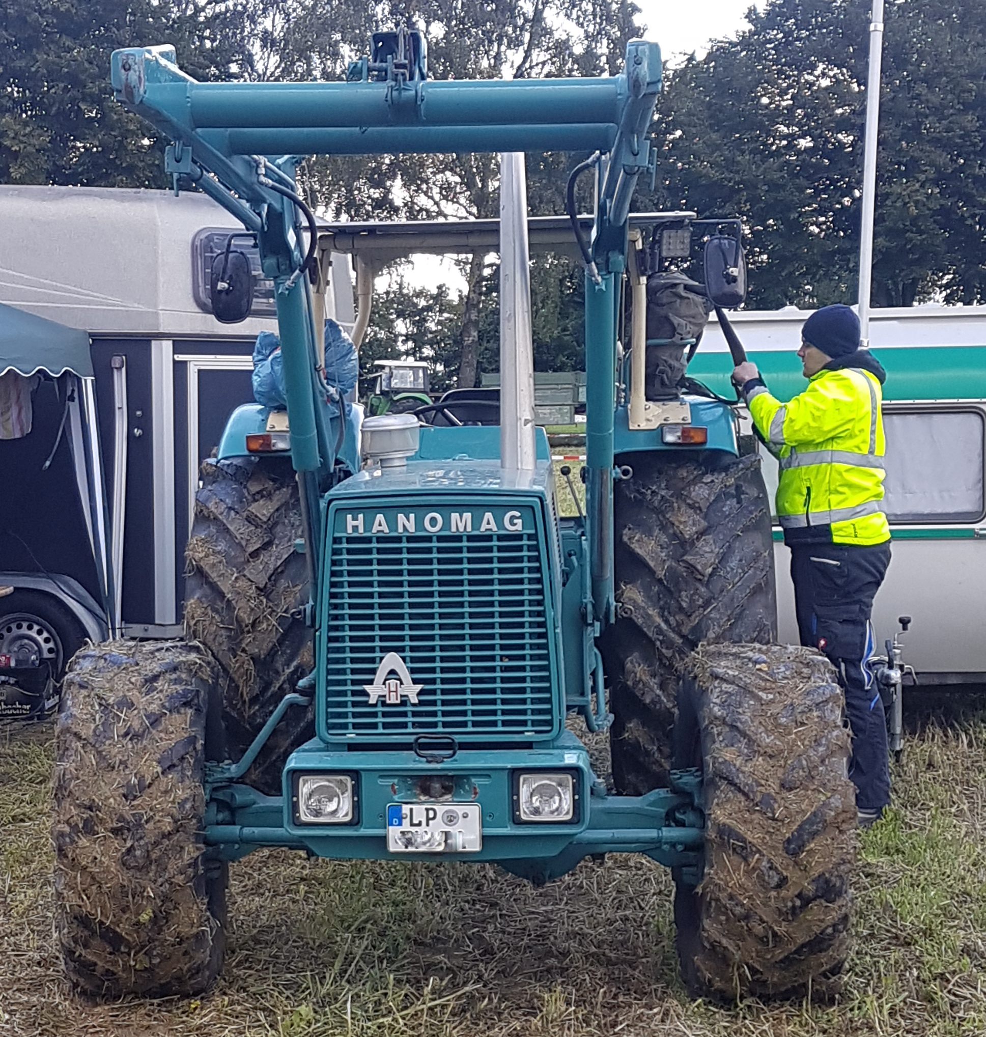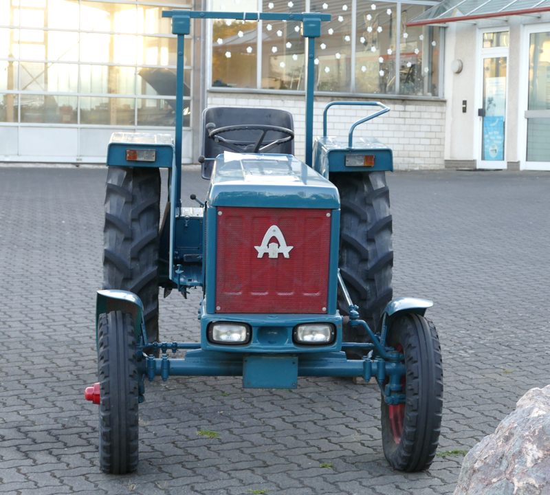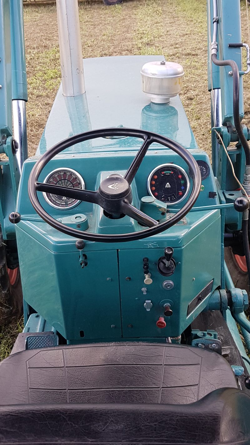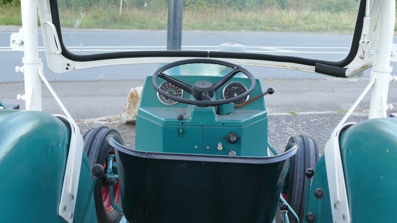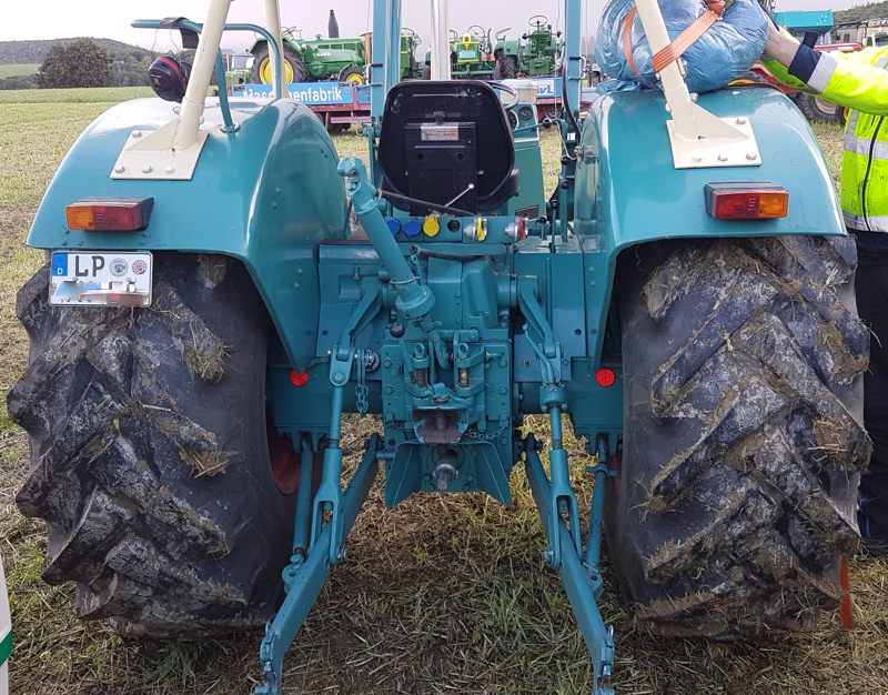 Dieser Hanomag Robust 900A steht auf breiteren Reifen als die, die das Werk anbot. Er ist noch immer im Einsatz der Landwirtschaft.