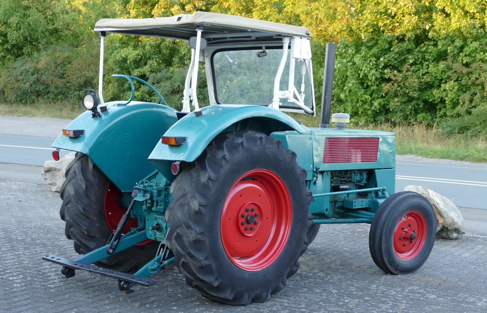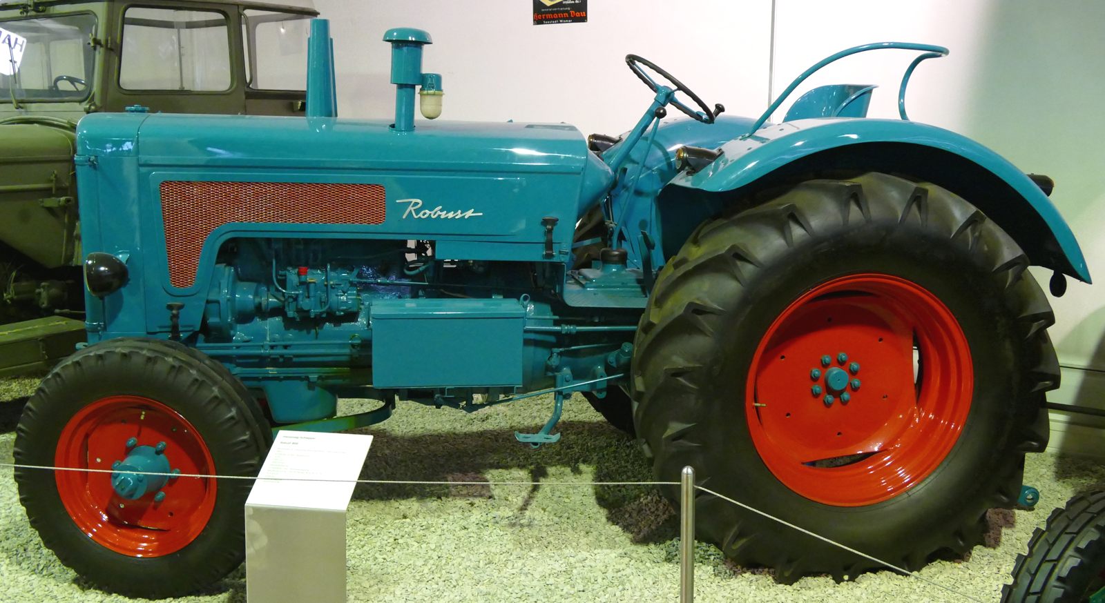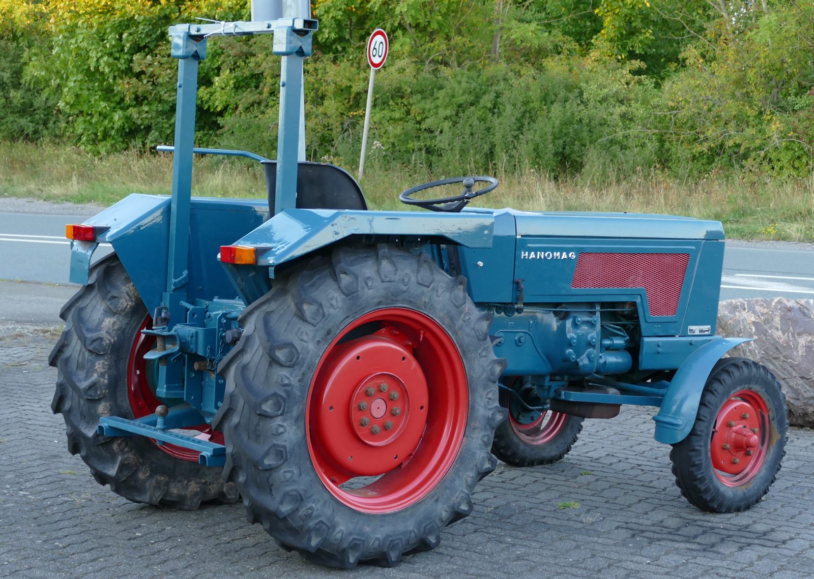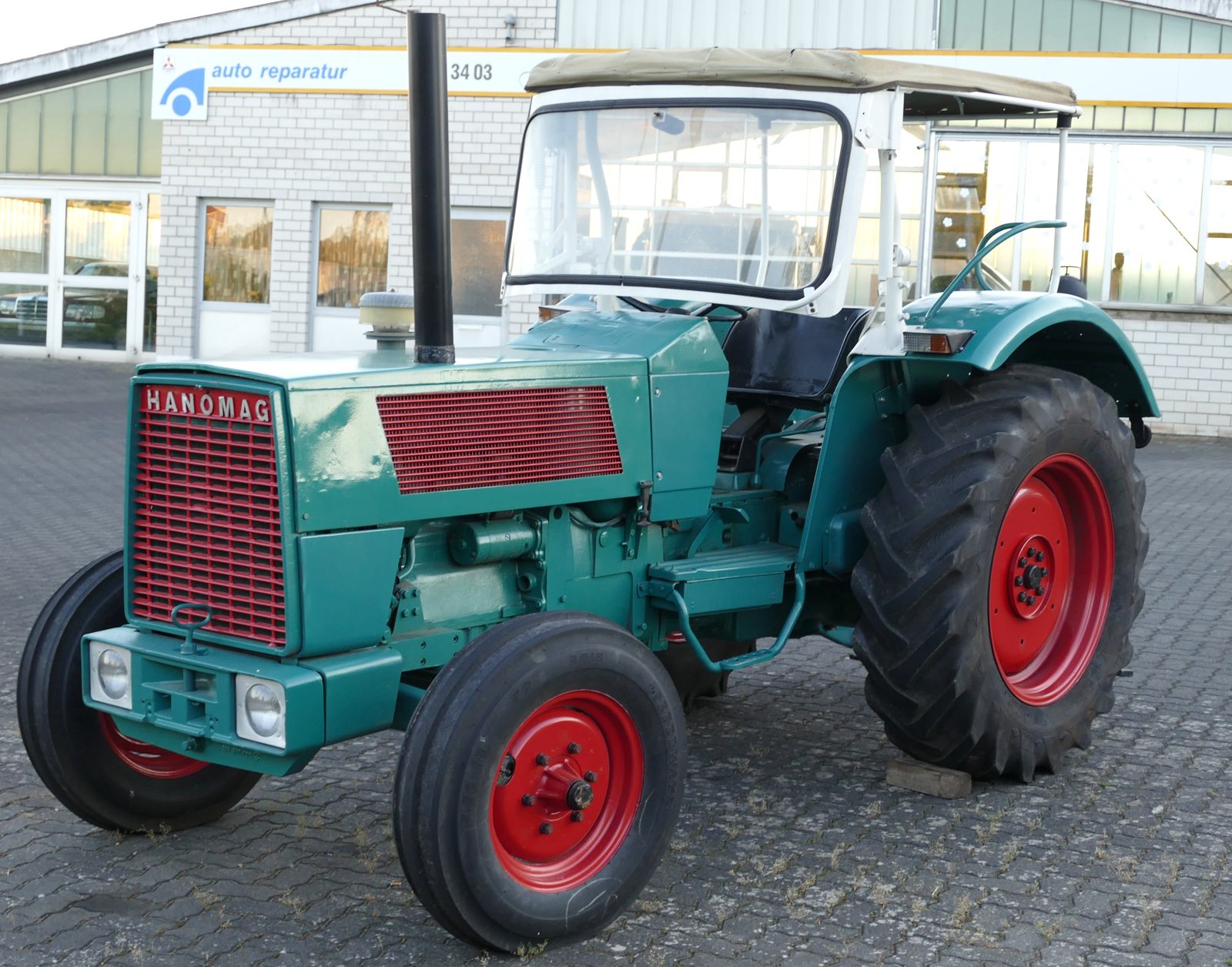 Dieser Hanomag Robust 900A steht auf breiteren Reifen als die, die das Werk anbot. Er ist noch immer im Einsatz der Landwirtschaft.